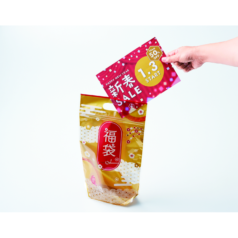 ●備考:セット内容/サランラップ22cm×15m・除菌JOYコンパクト・ハローキッチンペーパー70枚・ジップロックフリーザーバッグM3枚・アイラップ60枚×各12個、めで鯛スタンド福袋×60枚