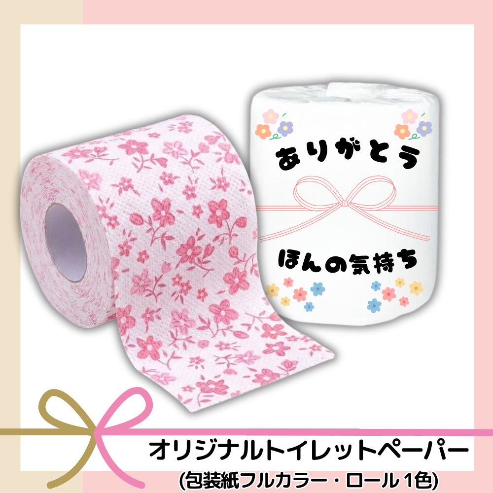 法人向けノベルティ:オリジナルデザインを包装紙(巻紙)フルカラーで印刷できるトイレットペーパーです。